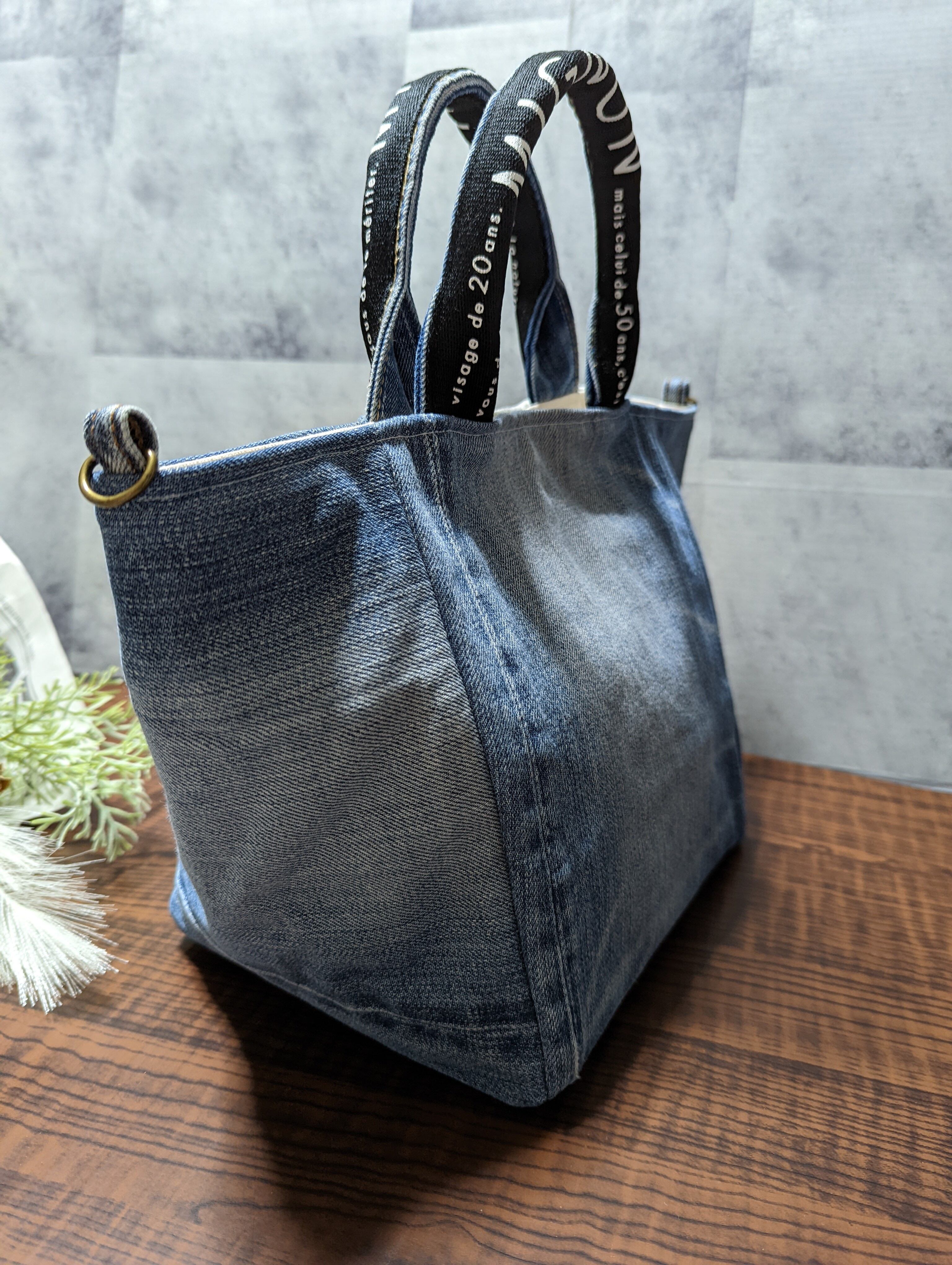 デニムパッチワークバッグ***№11/ロゴハンドル